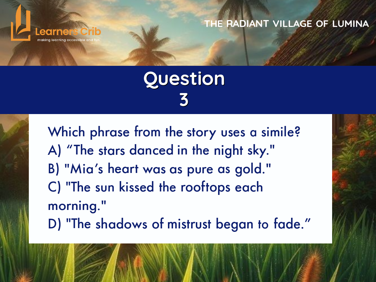Once upon a time, in the radiant village of Lumina, honesty was as rare as a diamond in the rough. Lumina was a picturesque village nestled between rolling hills and babbling brooks, where the sun kissed the rooftops each morning and the stars danced in the night sky.